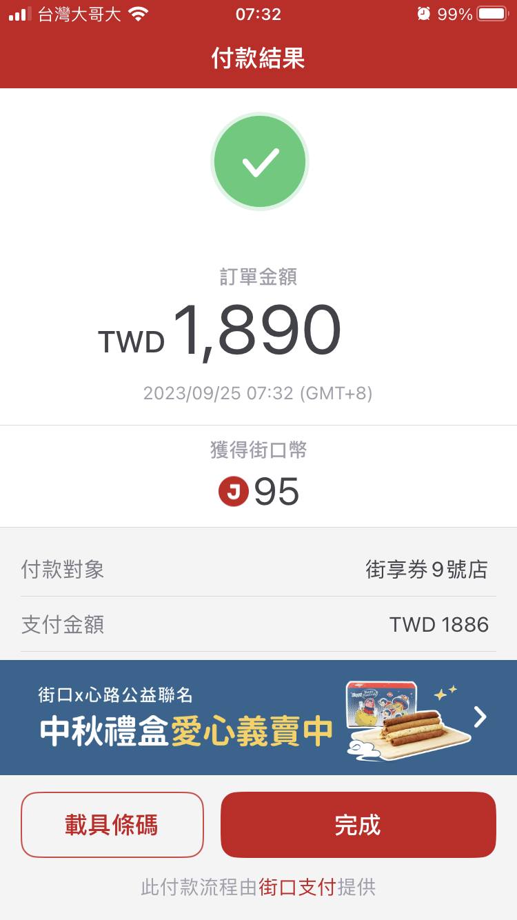 不過不知道為什麼,街口的回饋畢竟然是 95元,竟然超過 3%,感覺又小賺一波,如果你知道的話,可以來這裡留言跟我說唷。