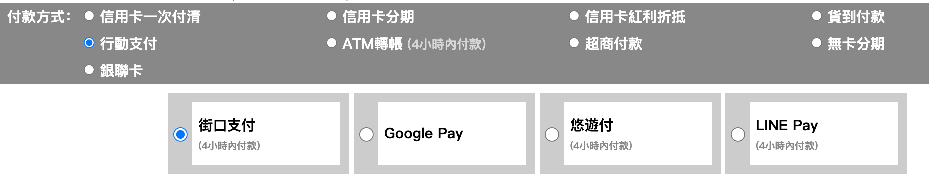 在交易付款的畫面中,要先選擇行動支付,才會出現街口支付的位置