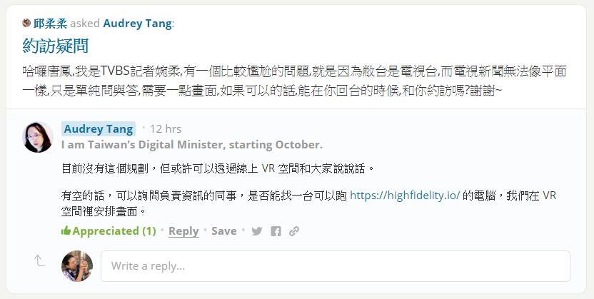 這個平台是線上 Q&A 工具,所有記者直接在上面提問,只要一次回覆問題就可以