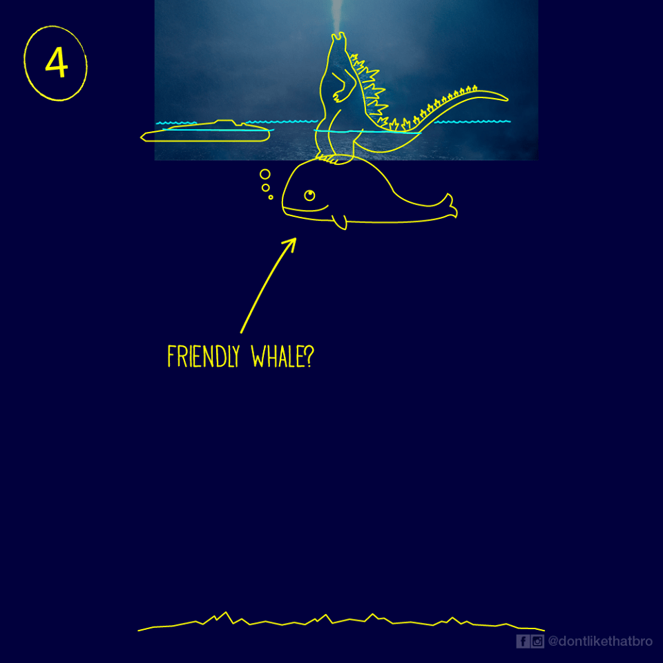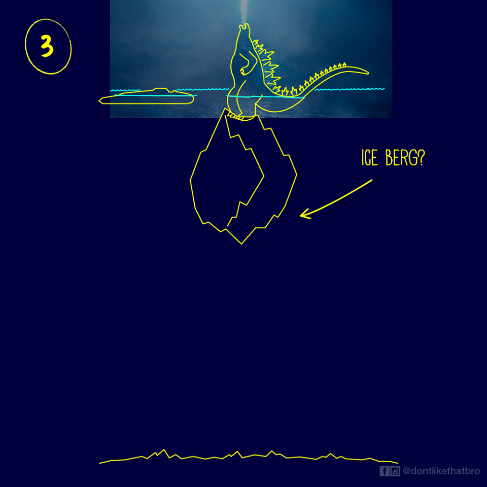 今年的強檔怪獸片《哥吉拉ll:怪獸之王》廣受網友的好評,除了哥吉拉本人之外,還出場了非常多的怪獸,像是基多拉、拉頓、摩斯拉等等…但是這張電影海報被網友們發現,竟然藏了一個神秘的錯誤?哥吉拉怎麼可以站在水面,不會掉下去? 這個問題引起全世界的網友爭相討論,甚至出現一系列惡搞的說明圖