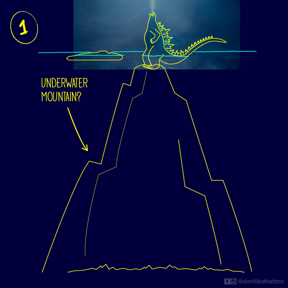 又有人說哥吉拉剛好站在海底岩石上