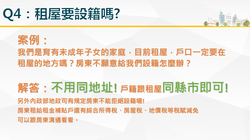 其實這個輔助方案,也是針對今年六月的租屋新制,房東不能禁止房客遷入戶籍,讓房客都能申請政府的租屋輔助,藉此減少台灣的空屋率,讓房價可以趨緩