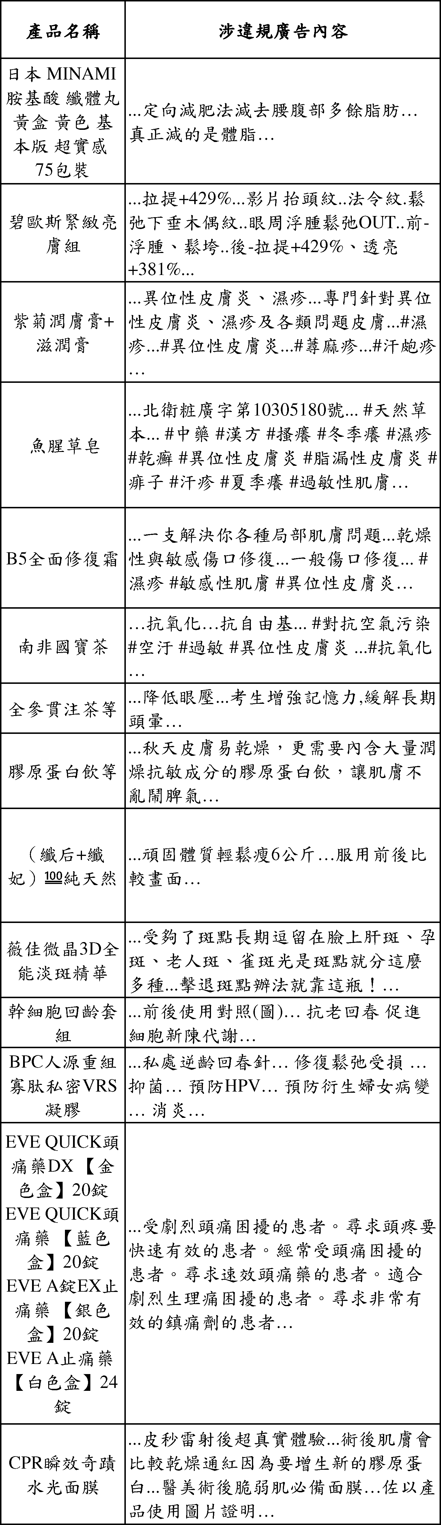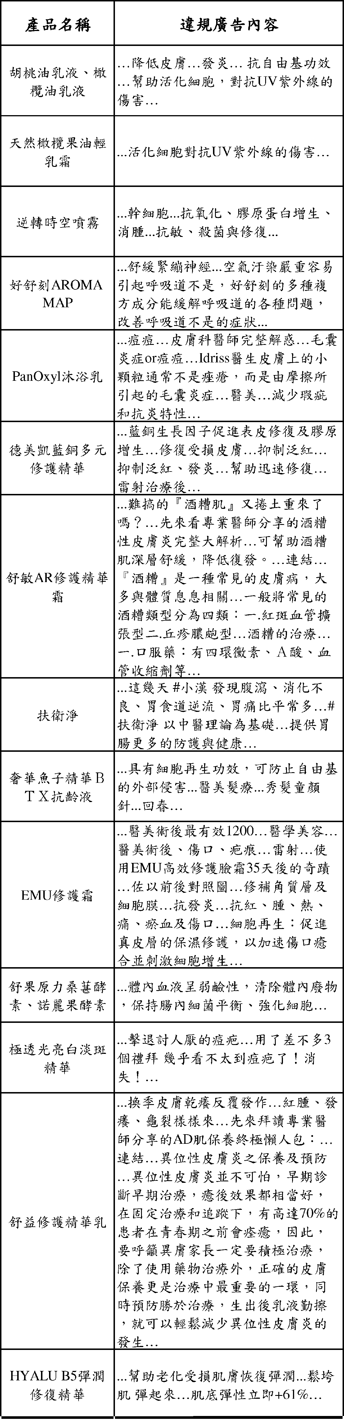 你以為只有部落格會被檢舉化妝品違規廣告,其實現在政府也針對 Facebook、Instagram、Youtube、Line 等新興社群媒體查緝食品、藥物、化粧品違規廣告,下面是今年台北市政府查獲的化妝品違規廣告,有一個特別的地方要說明,