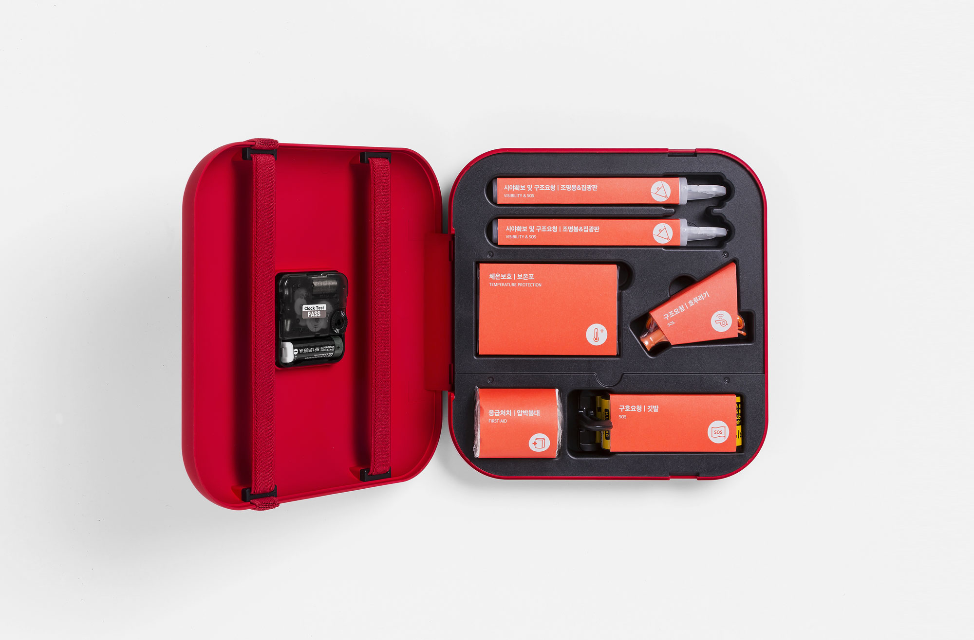 這是來自韓國的設計商品,結合家中常見的時鐘與防災用品兩種功能,創造出融合現代美學的極簡主義,將時鐘與防災包融為一體,可以在任何情況下快速找到這個防災包