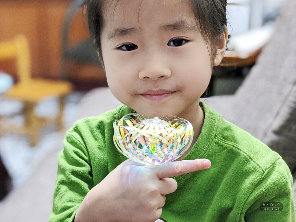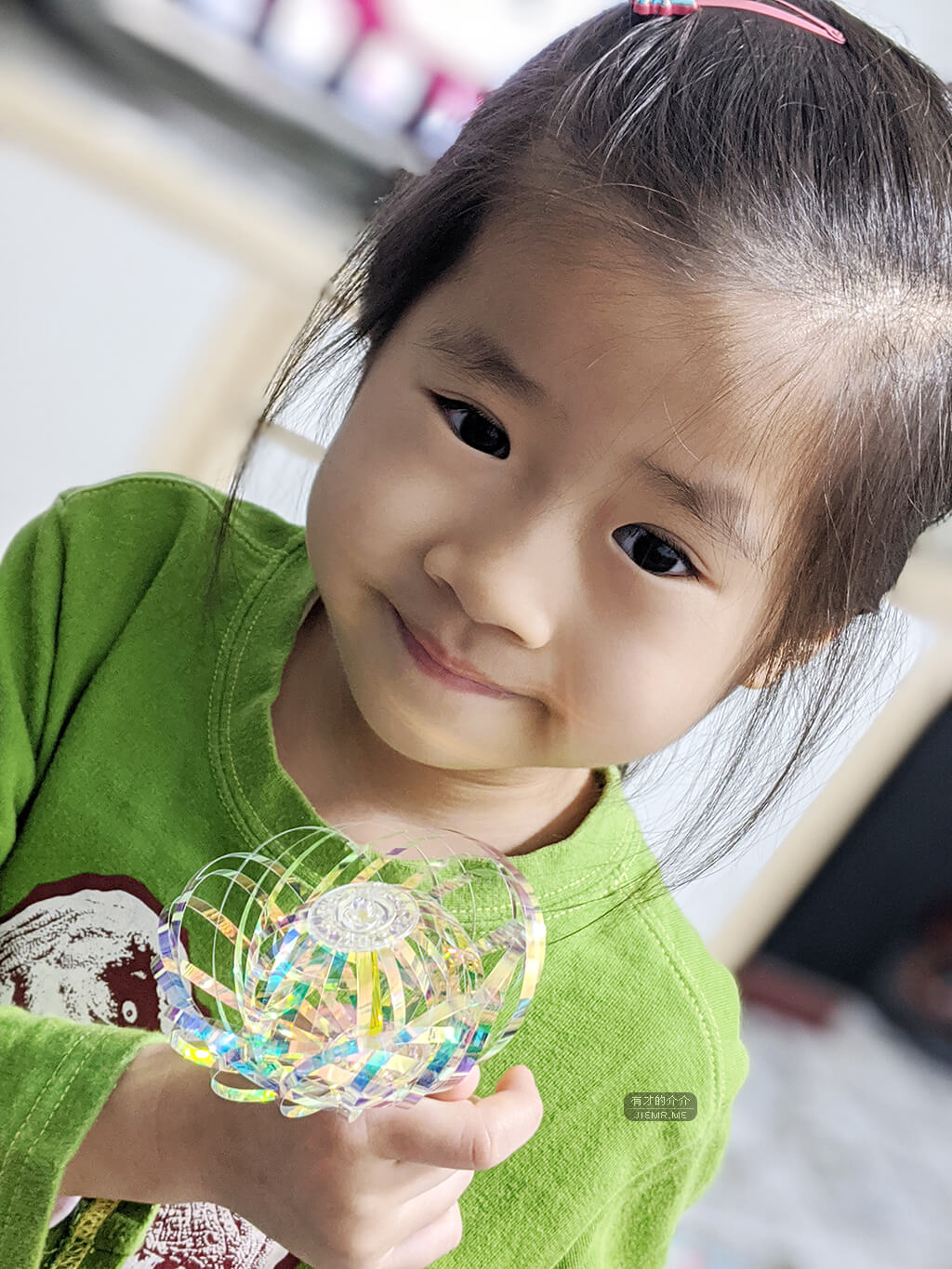 這個彩色的圓球棒子,英文名子是 Fanta Stick 翻譯成中文叫做【芬達棒】但介介覺得稱之為彩虹魔法泡泡棒更為適合,這是一個永遠不會破掉的大泡泡,透過光線的折射會反射出彩虹般的美麗色彩,小香瓜可以玩上一整天