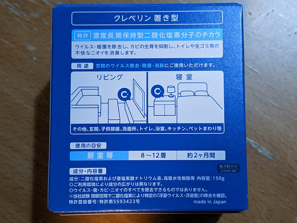 它揮發出的氣體主要的成分是「亞氯酸鈉」就是鹽加水會產生的元素,所以日本有對屋外撒鹽讓鬼驅離的典故,就是一種防疫的概念