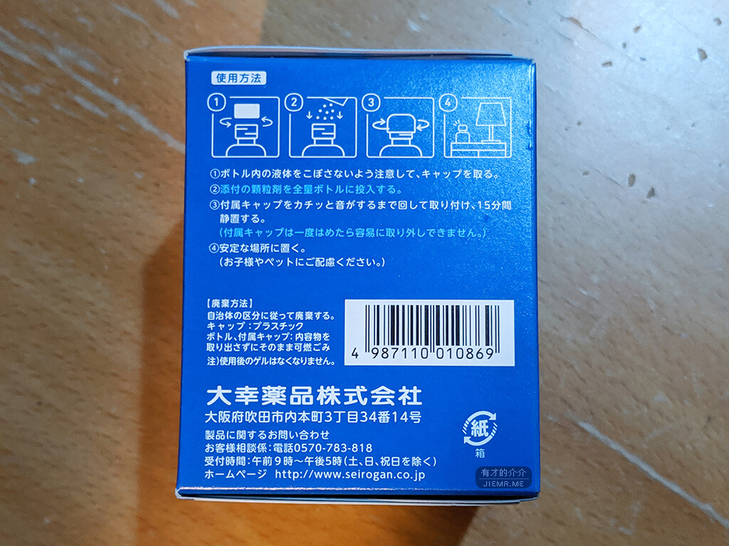 這東西不是喝的,只是放置在室內就會揮發出抑制細菌生長的東西,是日本人發明的東西