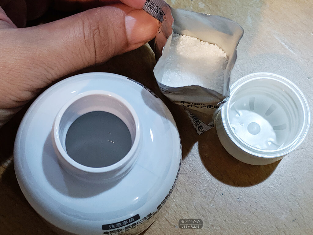打開包裝後有三個物件,本體、粉劑包、一個蓋子