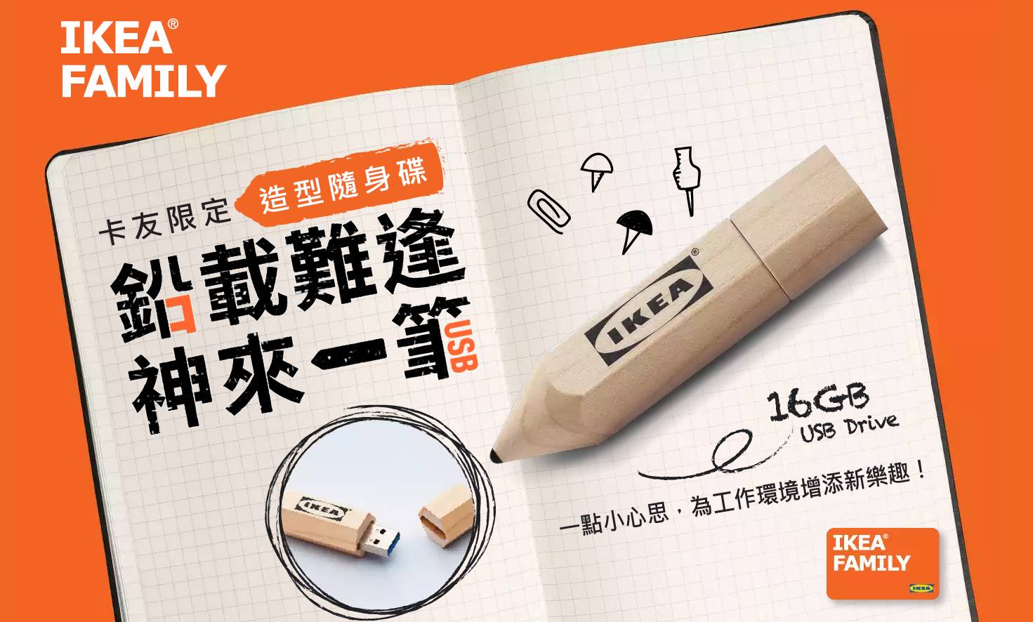 #IKEA 最讓介介印象深刻的,就是店裡面的短鉛筆,可以讓人無限拿取,對於愛畫畫的人,鉛筆總是有一種無法抗拒的魅力,現在他們將短鉛筆做成隨身碟,看起來好誘人唷,只要在 2016.11.01~30 期間,單筆消費滿2千就可以換隨身碟了