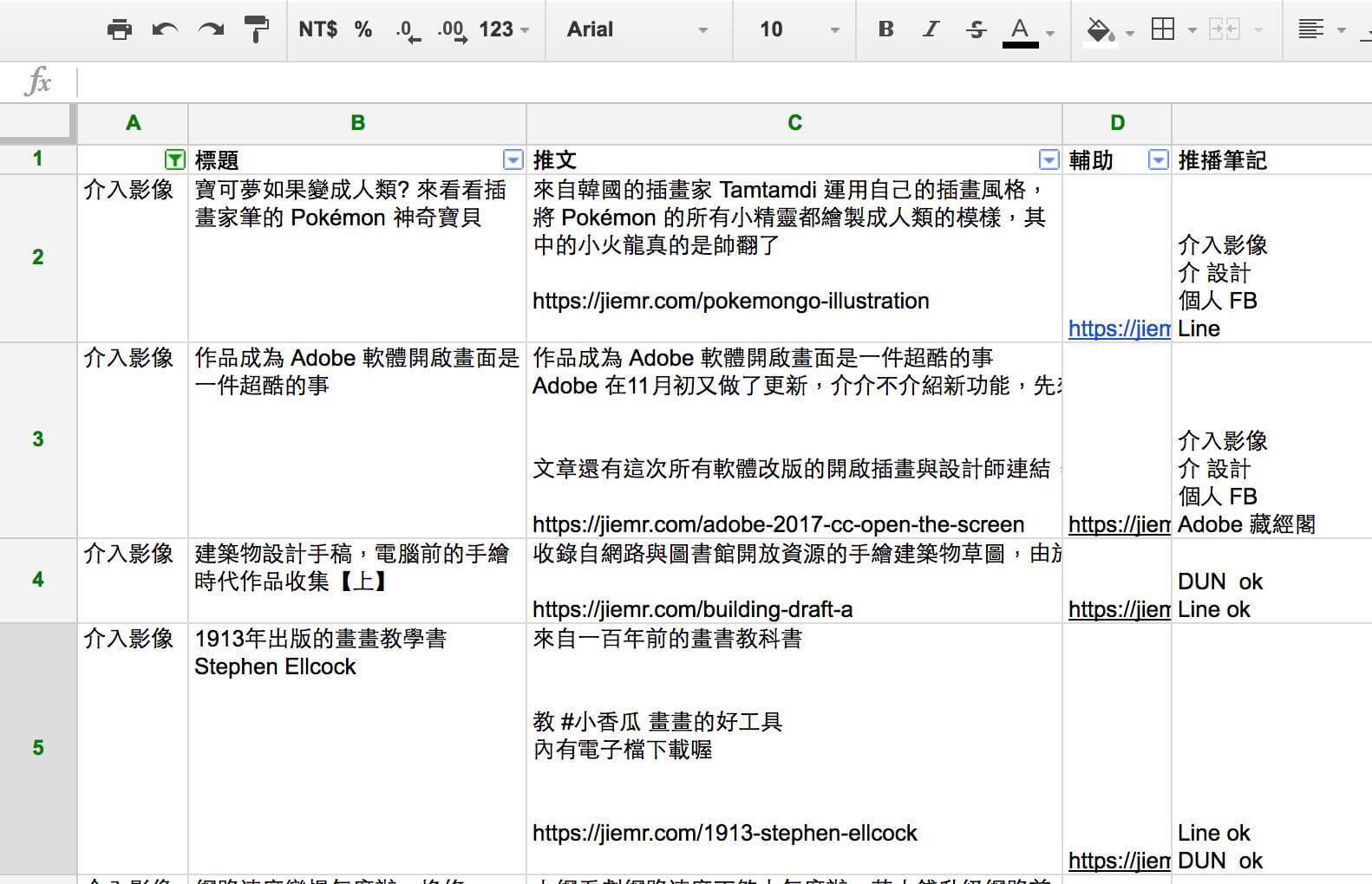 除了文章的 #SEO優化 我還會針對每篇文章整合成一份表單,幫每篇文章做行銷規