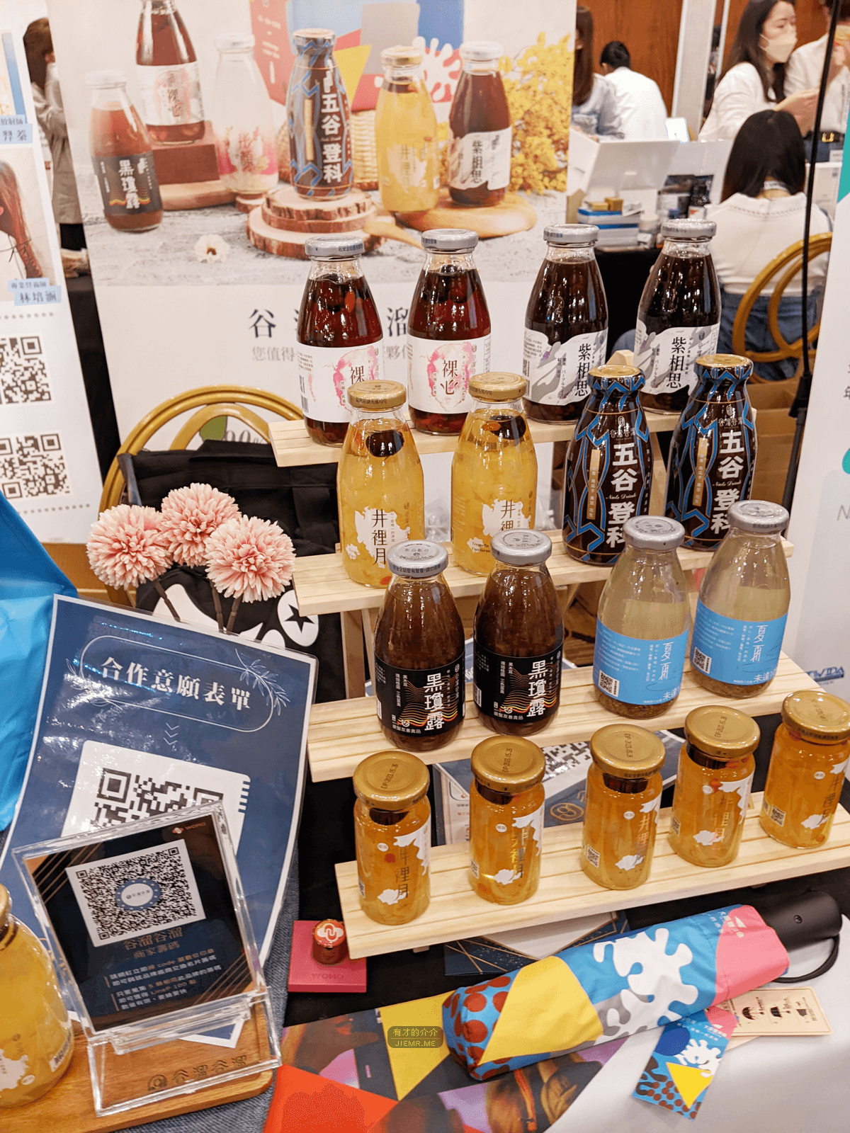 這次的攤位超過五十幾個,透過跟每個品牌主聊天的過程,了解到產品的特性以及跟競品的優勢,比較有趣的是,介介遞交名片給品牌主時,有些看到名片上寫著「李介介」竟然會說原來你就是李介介,介紹很多設計資源的李介介,這些人幾乎都是行銷或設計師,也是我早期深耕的一個領域,自然而然後續的合作配合就更加順利了.這印證上午場講師們提到的自媒體經營自有品牌的重要性。