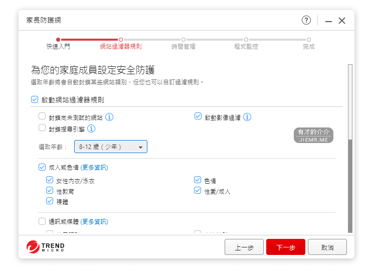 封鎖搜尋引擎、阻擋成人色情、賭博、甚至是聊天軟體,最扯的是還可以封鎖購物網站,很適合給我老婆使用 XD