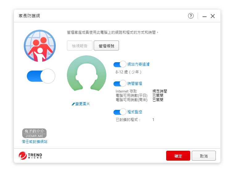 Pc-cillin 雲端防毒軟體除了防毒的功能,還有家長防護網