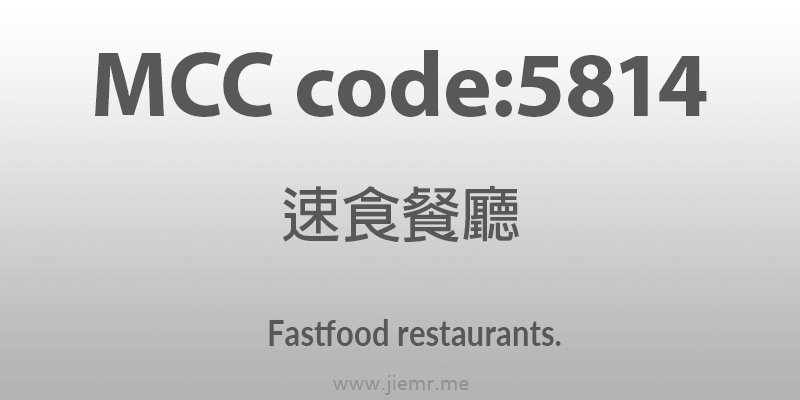 MCC code:5814 速食餐廳